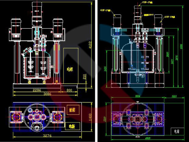 2、攪拌缸帶有夾套,可根據需要進行加熱及冷卻;